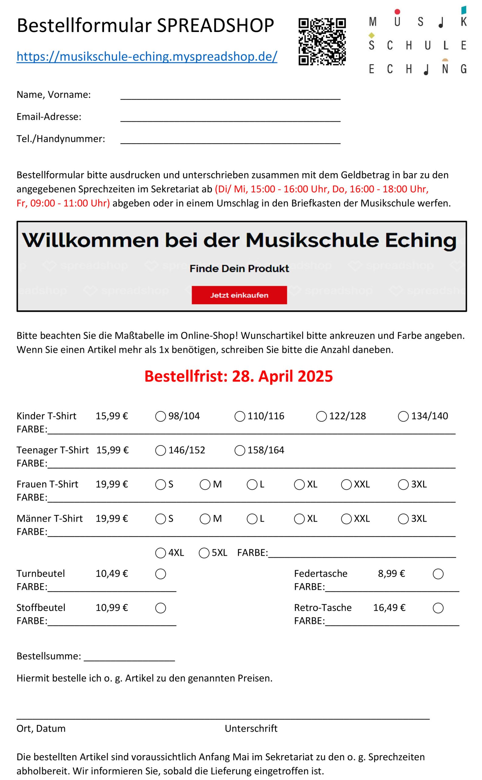 Für die Sammelbestellung drucken Sie bitte beigefügtes Bestellformular aus und geben es ausgefüllt und unterschrieben zusammen mit dem Geldbetrag in bar zu den Sprechzeiten im Sekretariat ab: